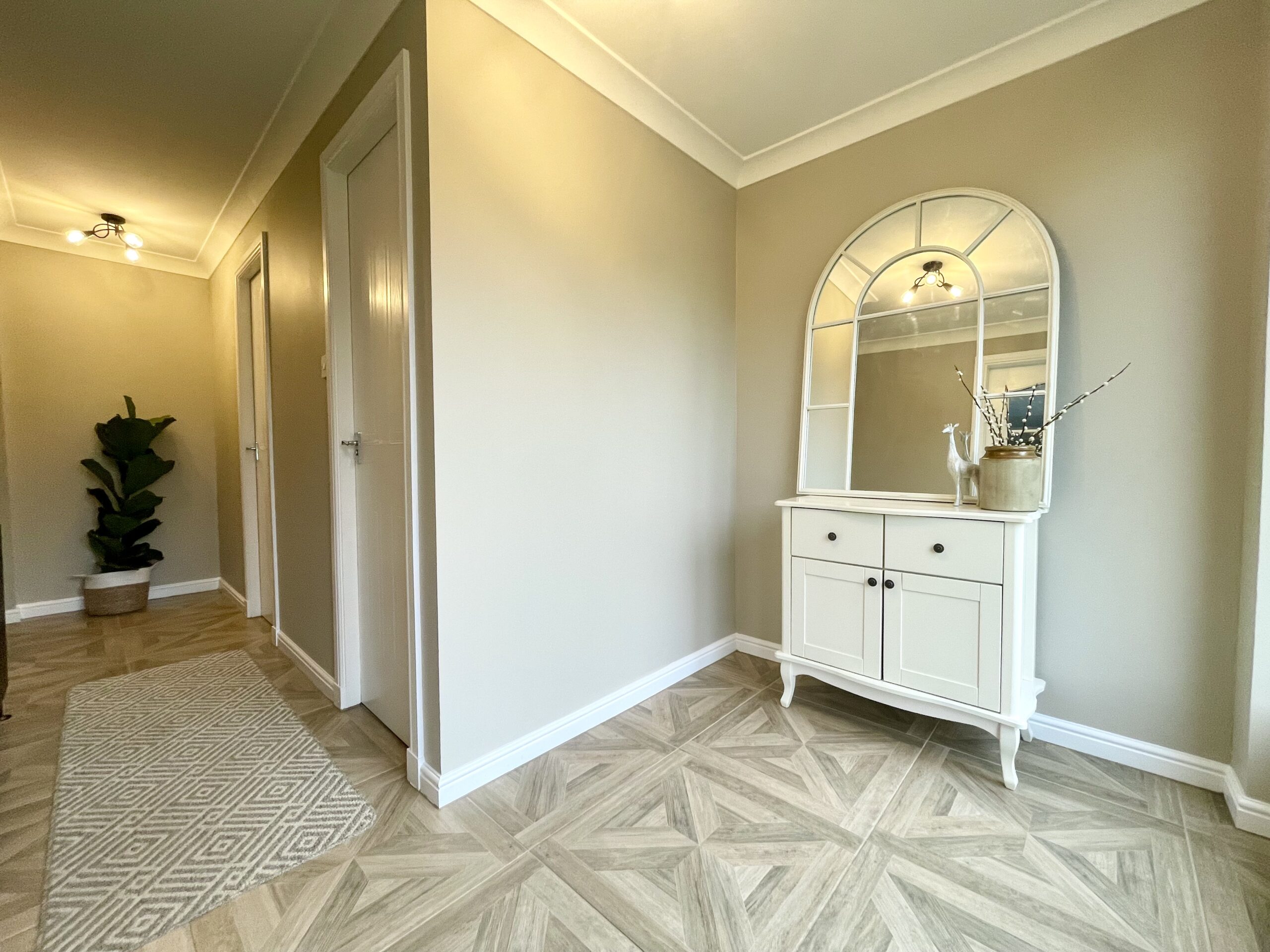 This bright impressive lower hall gives access to lounge, utility room and WC cloaks. Tiled flooring and feature lighting. A carpeted gallery staircase guides you to the upper apartments.
