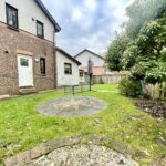 Window to rear, sink with mixer tap, storage cupboard, feature lighting and back door accessing side gardens.