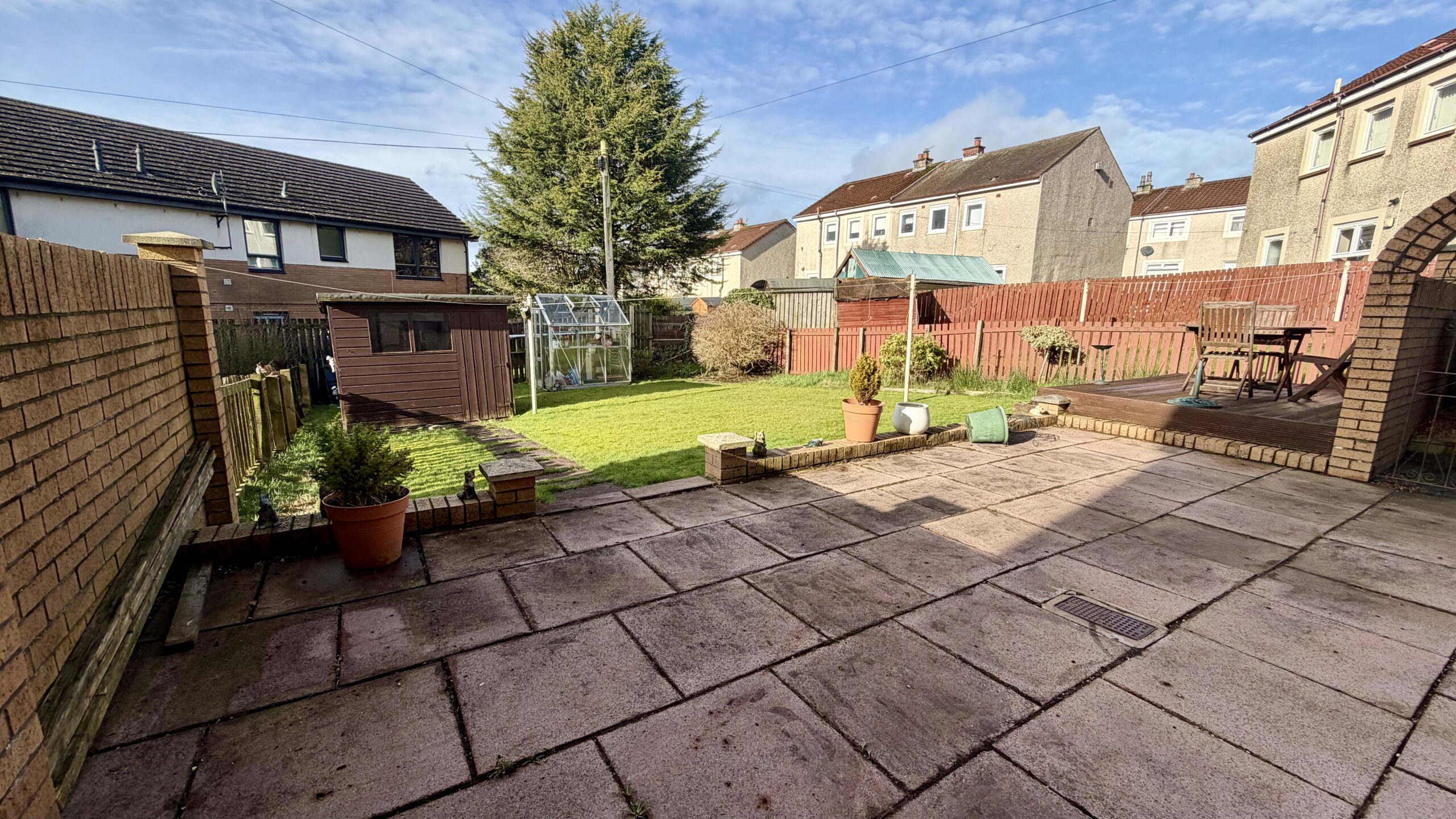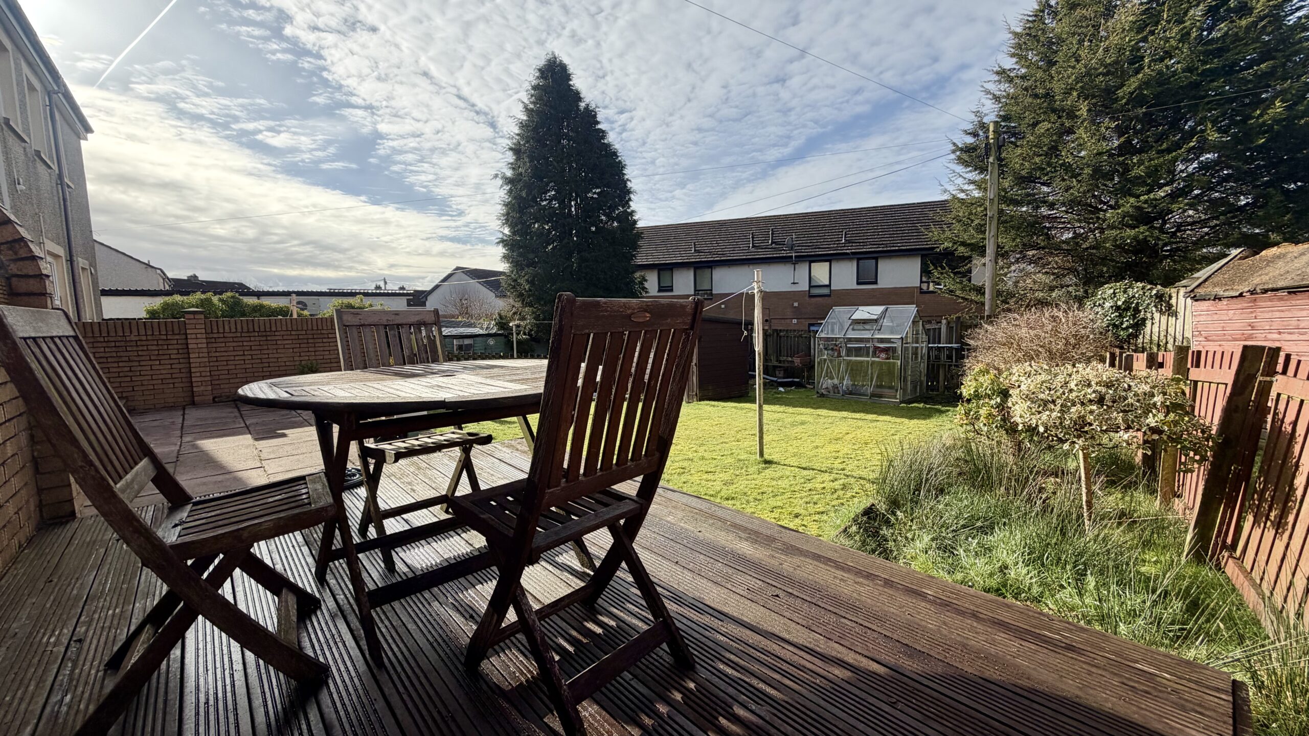Rear garden is mainly laid to lawn with paved with patio area, decking and garden shed.