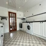 Fitted kitchen with ample floor and wall units with contrasting worktops. Gas cooker, washing machine, tiled flooring, recess lighting, window to rear and back door accessing rear garden and patio. Door accessing inner hallway.