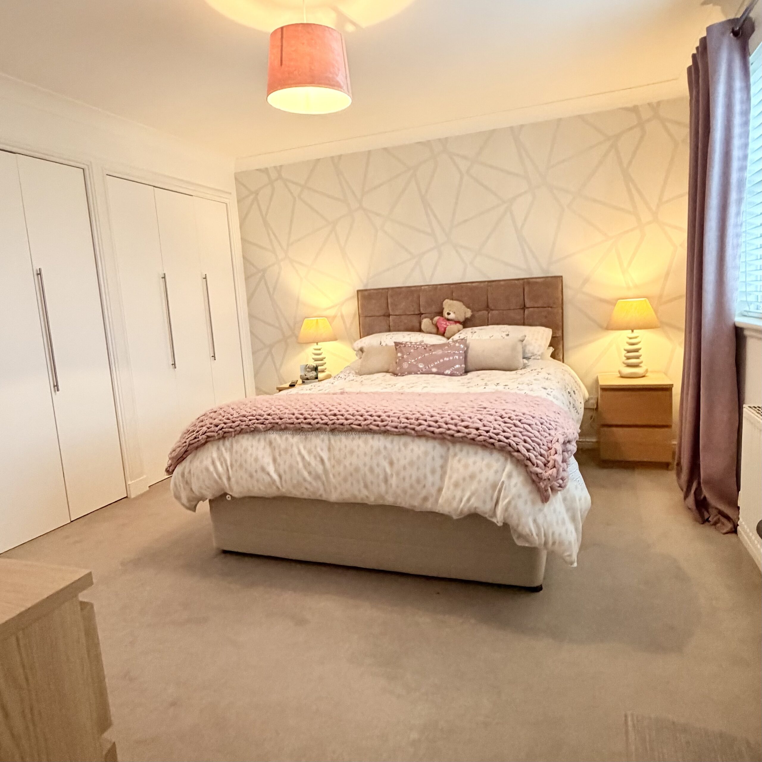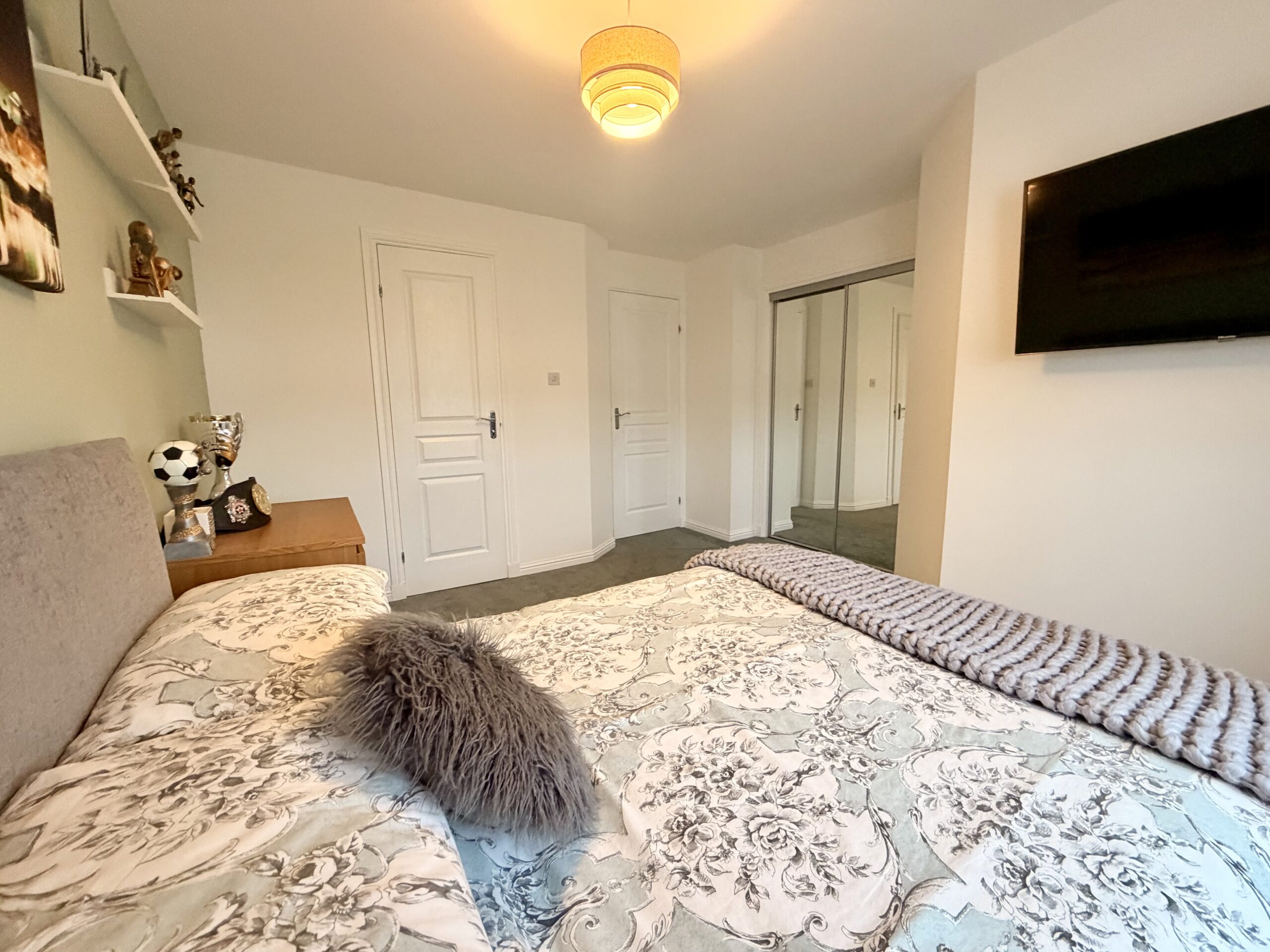 Double bedroom with window to rear, carpeted flooring, double mirrored wardrobes and feature lighting. Access to ensuite 'Jack & Jill' shower room and inner hallway.