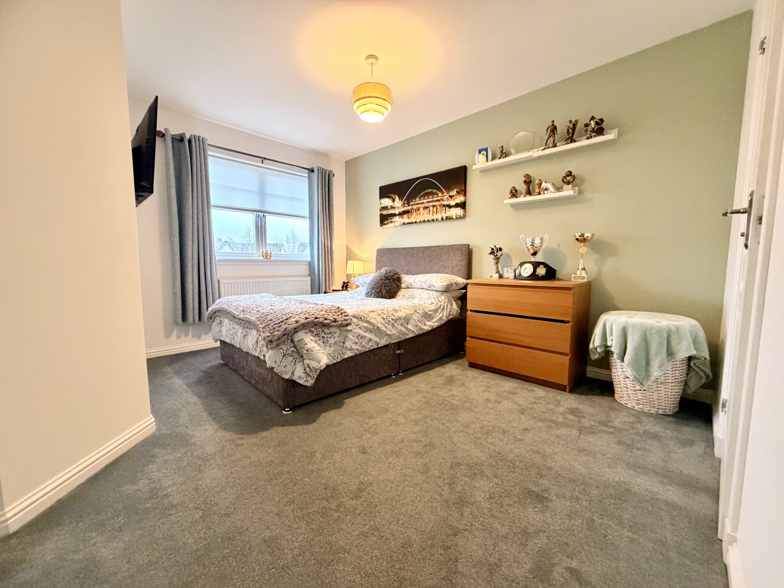 Double bedroom with carpeted flooring, double mirrored fitted wardrobes, window to front and feature lighting, access to en-suite 'Jack & Jill' shower room. Access to inner hallway.
