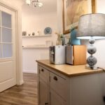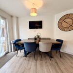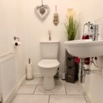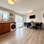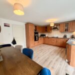This bright lower hall gives access to lounge with laminate flooring, and feature lighting, carpeted gallery staircase guiding you to the upper apartments. Doors accessing lounge, dining kitchen, dining room / bedroom 5 and WC cloaks.
