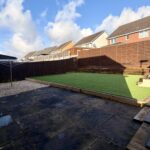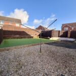 Enclosed gardens mainly laid to lawn with paved patio and play area for children with astroturf.